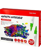Акриловые маркеры двуст., набор 20 шт (МП-4861), 1 белый цв., 5 металлик цв., в к/к