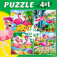 ПАЗЛЫ 4 в 1. КРАСИВЫЕ ФЛАМИНГО №4 (9,16, 25, 36 эл.)