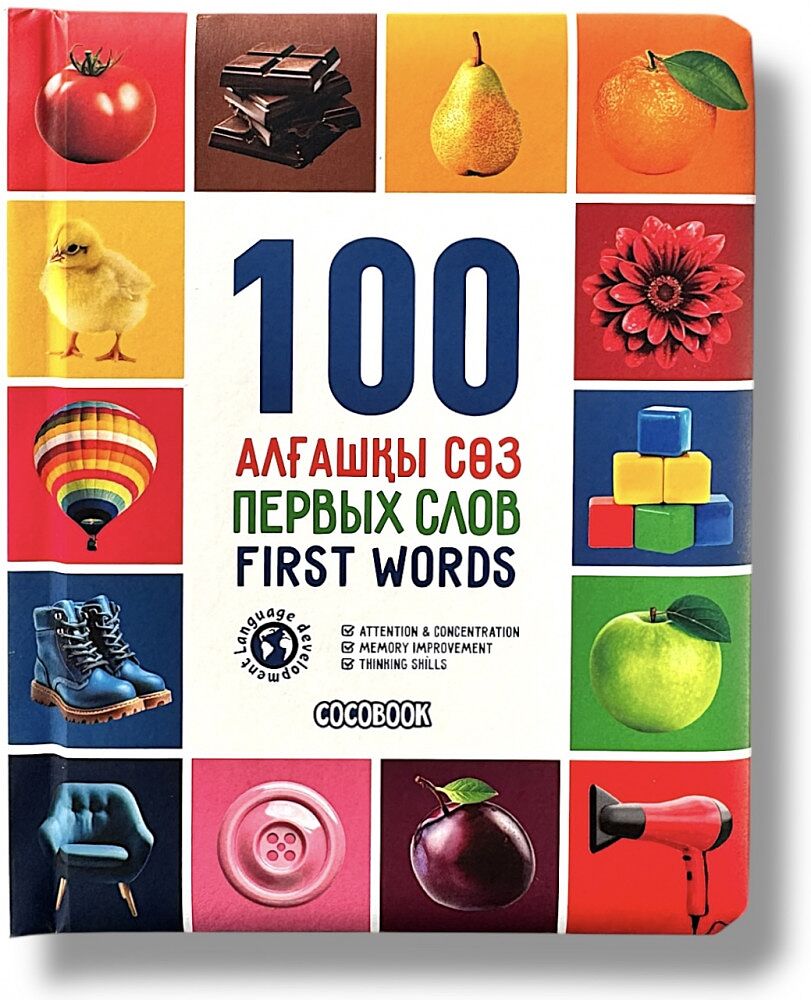 100 Алғашқы сөз, Первых слов, First words. ФОТОКНИГА НА ТРЁХ ЯЗЫКАХ
