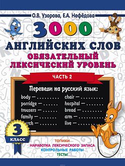 Учебное пособие известных педагогов-практиков О. В. Узоровой и Е. А. Нефёдовой позволит ученикам быстро выучить английских слов и выражений по разным темам за 3 класс, а учителю и родителям — проверить их знания. Кому эта книга будет интересна Отличное дополнительное пособие для школьников младших классов. Каковы особенности этой книги • Соответствует ФГОС и программе обучения английскому языку в начальной школе. • Даёт возможность ученикам быстро проверить свои знания по английскому языку за 3 класс, а учителю и родителям — проконтролировать их, то есть отметить время, которое ребёнок затратил на выполнение заданий. • Для проверки на каждой странице дано контрольное время выполнения заданий.