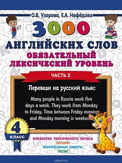 Книга «Быстро выучим английские слова. Обязательный лексический уровень. 4 класс» создано известными педагогами-практиками О. В. Узоровой и Е. А. Нефёдовой. Базовый минимум английских слов и выражений по разным темам за 4 класс представлен таким образом, что даёт возможность ученикам быстро выучить их значение и написание. Учителя и родители могут отметить время, которое ребёнок затратил на выполнение заданий. На каждой странице дано контрольное время.