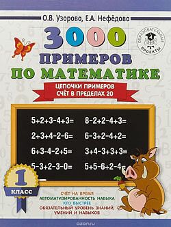 В пособии представлен материал, который поможет сформировать навыки устного счета по базовым темам первого класса: Счет в пределах 5, Счет в пределах 10, Счет в пределах 10 со скобками, Счет в пределах 20, Счет в пределах 20 со скобками, а также логические примеры для тренировки вычисления удобным способом.Как понять, доведен ли навык счёта до автоматизма? На каждый знак действия отводится 3-4 с. Если ребёнок хорошо считает, то пример 7-2+3-4-3+7-6+3= он решит за 20-25 с, неплохим результатом будет и 30 с. Правильная постановка занятий устным счетом в начальной школе предполагает ежедневные и непродолжительные (5 - 10 мин) упражнения.Последовательное выполнение заданий пособия поможет ученикам овладеть навыками устного счета всех форм: беглым слуховым счетом (учитель вслух читает цепочку примеров, делая небольшие остановки для подсчёта, и ученик через несколько секунд отвечает), зрительным счетом (цепочки примеров записаны, а ответы ученик либо сообщает устно, либо записывает), комбинированным счетом (учитель диктует цепочки примеров, а ученик записывает ответы).Систематическое выполнение этих заданий развивает логическое и математическое мышление, сообразительность, укрепляет память и внимание. По усмотрению учителя цепочки примеров можно использовать как для олимпиадных работ и заданий повышенной сложности, так и для повторения и закрепления пройденной темы. Для лучшего усвоения материала рекомендуется решать по десять примеров в день.Пособие можно использовать на уроках математики и для самостоятельной работы дома.