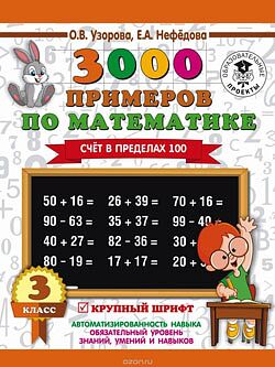 В пособии собраны 3000 новых примеров по математике по одной из базовых тем - Счет в пределах 100. Как и любая другая тема, она требует внимательного осмысления и прочного закрепления. Особенностью этого издания является крупный шрифт.Как показывает практика, ученик полностью усвоил тему, если решает пример и записывает ответ в течение 4-7 секунд. В этом случае можно говорить, что навык счета доведен до автоматизма.На каждой странице приведены 6-7 столбиков, в среднем по 35 примеров. В конце столбика записывается время, потраченное учеником на решение. В левом нижнем углу обозначены контрольные цифры: идеальное время решения одного столбика, удовлетворительное и результат, который должен заставить ученика задуматься.Учителю сложно проверить такое количество примеров, поэтому лучше, если время, затраченное на решение каждого столбика, отметят взрослые дома.