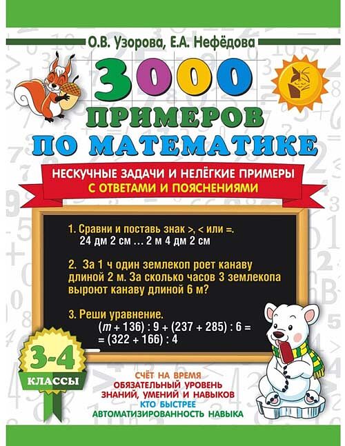 3000 примеров по математике. Нескучные задачи и нелегкие примеры. С ответами и пояснениями. 3-4 клас