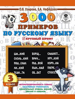 Пособие содержит 3000 новых примеров на повторение и закрепление основных правил орфографии и пунктуации. Оно охватывает всю программу 3 класса по русскому языку. Особенностью этого издания является крупный шрифт. Материал построен таким образом, что позволяет за короткое время учащимся отработать все орфограммы и пунктограммы, а учителю проверить их знания. Пособие может быть использовано как на уроках русского языка, так и для работы дома