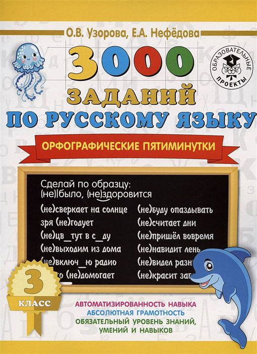 Пособие содержит задания на все основные правила программы русского языка для 3 класса. Эти задания помогут ребёнку овладеть навыком грамотного письма, ведь чтобы писать грамотно, нужно не только знать правила, но и научиться правильно применять их. Материал пособия построен таким образом, что за короткое время позволяет учащимся отработать все основные орфограммы, а учителю — проверить их знания. После каждого варианта заданий приведена строка со смайликами и соответствующим количеством допущенных ошибок, которая поможет ученику после проверки работы оценить уровень своих знаний. Как работать с пособием, чтобы достичь наилучшего результата? Сначала ребёнок выполняет задание, например вставляет пропущенные буквы. Потом предложите ему объяснить орфограммы, подобрать и написать или проговорить проверочные слова, а затем пусть под диктовку напишет в отдельной тетради 5-7 словосочетаний из выполненного варианта. Пособие можно использовать на уроках русского языка и для самостоятельных занятий дома.