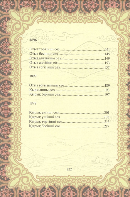 Абай Кұнанбаев (1845 – 1904) – қазақтың ұлы ақыны және ойшылы. Кітапқа оның атақты «Қара сөздері» еңген.