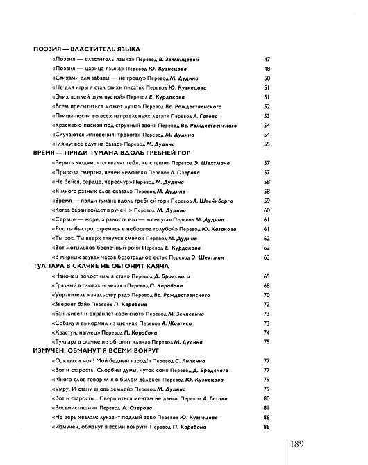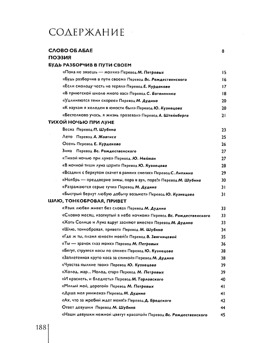Книга составлена известным казахстанским писателем, переводчиком, литературоведом Герольдом Бельгером. Его статьей Почему трудно переводить Абая? заключается книга. И все те вопросы, которыми задается автор статьи, стояли и перед издательством при подготовке сборника. Чей перевод лучший, в чьем переводе Абай предстанет наиболее точно? В некоторых стихотворениях предлагаются переводы нескольких авторов. Сборник достаточно полно представляет стихи, поэмы и сложную философскую прозу — Книга слов