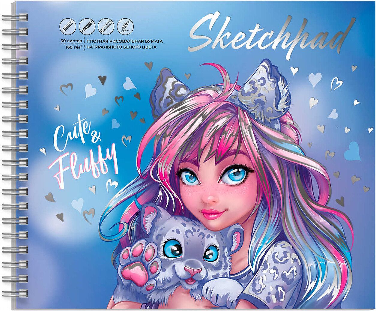 Альбом для рисования (Скетчпад) 168х195 мм, 30 л, блок - белая рисовальная бумага 160 г/м?, арт. 648