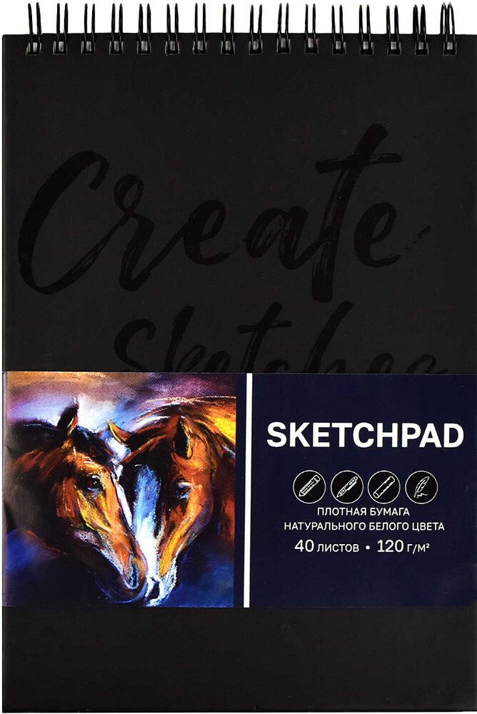Альбом для рисования (Скетчпад) А5+ 40 л, блок - белый офсет 120 г/м?, арт. 65419 ЛОШАДИ /обложка по