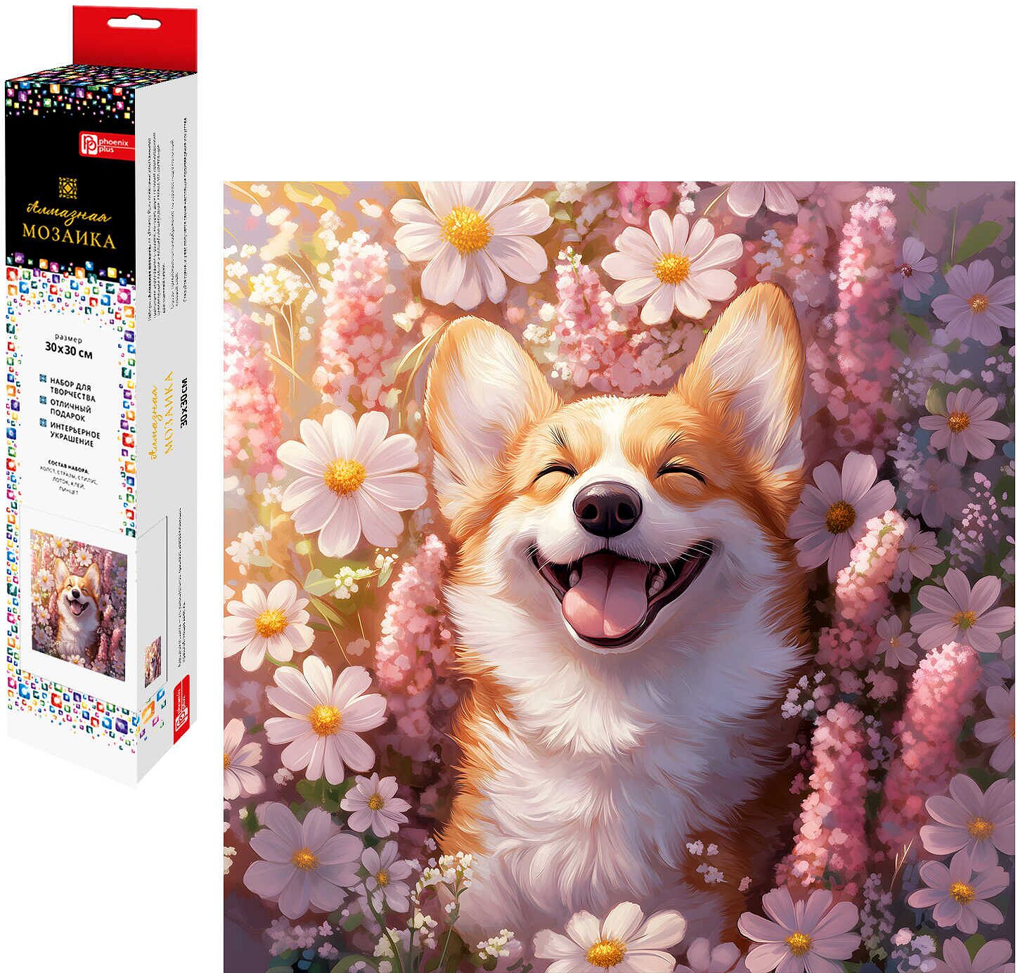 Алмазная мозаика (набор для творчества) арт. 70806 / 50 КОРГИ С РОМАШКАМИ, размер: 30x30 см, (27 цв