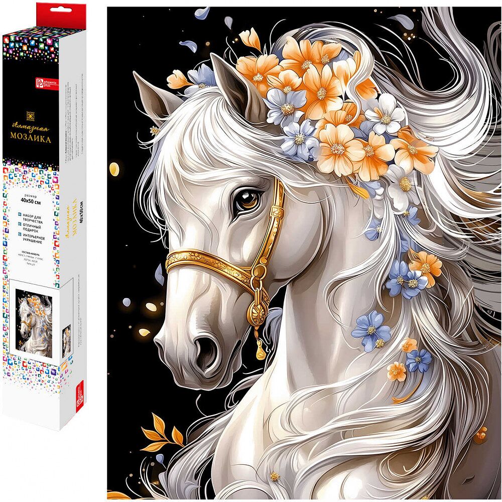 Алмазная мозаика (набор для творчества) арт. 70819 / 50 ЛОШАДЬ В ЦВЕТАХ, размер: 40x50 см, (25 цвет