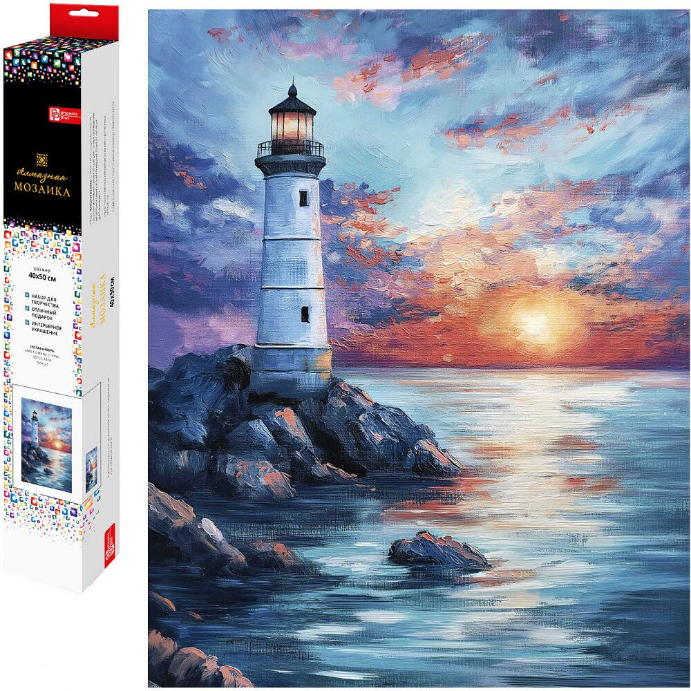 Алмазная мозаика (набор для творчества) арт. 70822 / 50 МАЯК НА ЗАКАТЕ, размер: 40x50 см, (26 цвето