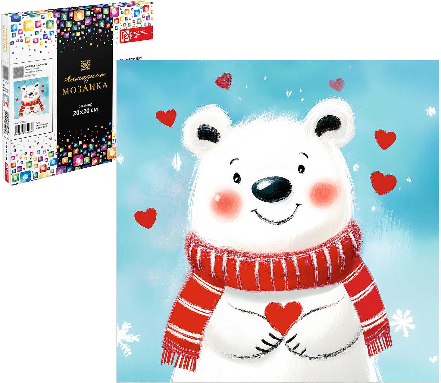 Алмазная мозаика (набор для творчества) арт. 70833 / 60 МИШКА В ШАРФИКЕ, размер: 20x20 см, (14 цвет