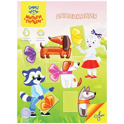 Книжки с аппликациями Мульти-Пульти содержат в себе страницы с заданиями и аппликациями, которые нужно выполнить, вырезать и приклеить. Ребенок вырезает элементы и наклеивает их в соответствии с заданным изображением. Такие занятия развивают логические навыки ребенка, память, аккуратность. Для детей старше 3-х лет. В аппликации 16 страниц. Плотность бумаги внутреннего блока 100 г/м2.