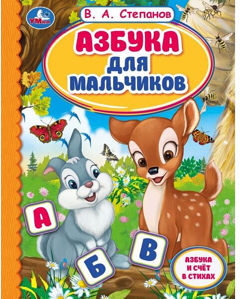 Книга «В. А. Степанов. Азбука для мальчиков» из серии «Библиотека детского сада» ТМ «УМка» — замечательный подарок для маленьких непосед, которые только учатся читать: • азбука и счёт в стихах Владимира Степанова. • крупные буквы. • красочные иллюстрации. • твёрдый переплёт. • удобный формат. Яркие красивые иллюстрации и добрые стихи — это то, что нужно для первого обучения чтению и знакомства с цифрами. С такой книгой изучать буквы будет не только полезно, но и увлекательно, а занимательные тексты стихов и красочное оформление не дадут малышу заскучать. Благодаря небольшому размеру книжку можно взять с собой в дорогу.