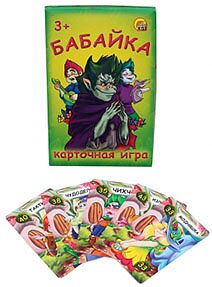 «Бабайка» - простая и быстрая карточная игра. В ней игроки должны тянуть у соседей карты и собирать пары карточек с одинаковыми изображениями. У одной карты нет пары - это и есть Бабайка. Игра в весёлой форме научит малышей сопоставлять изображения. Состав игры: - 110 карточек - Правила игры Количество игроков: 2-4 игрока Возраст: 3+ Время игры: 10+ минут