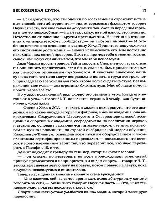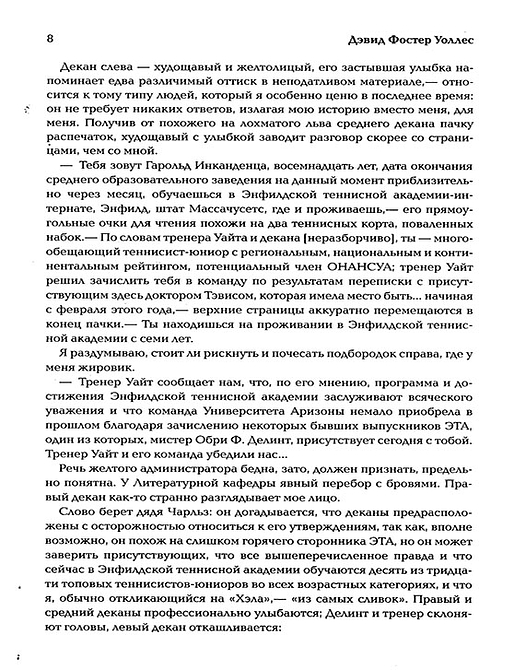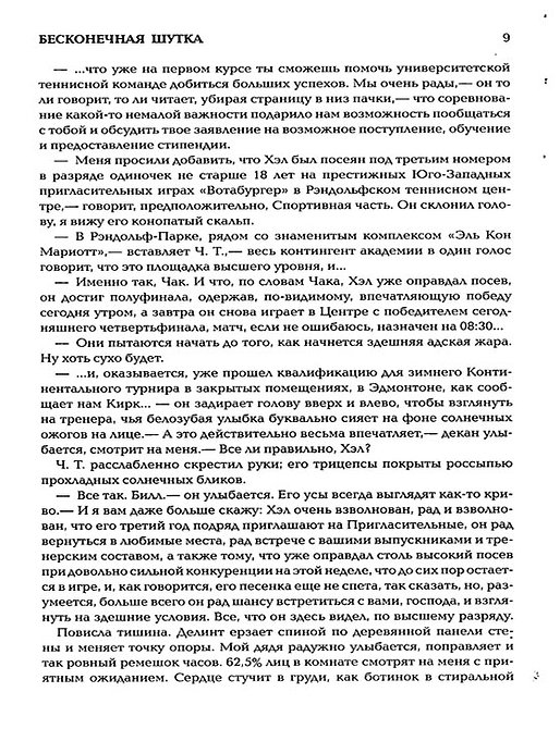 Впервые на русском! Международный бестселлер! По всему миру продано свыше 1000000 копий! Одна из величайших книг XX века! В недалеком будущем пациенты реабилитационной клиники ЭннетХаус и студенты Энфилдской теннисной академии, а также правительственные агенты и члены террористической ячейки ищут мастер-копию «Бесконечной шутки», фильма, который, по слухам, настолько опасен, что любой, кто его посмотрит, умирает от блаженства.