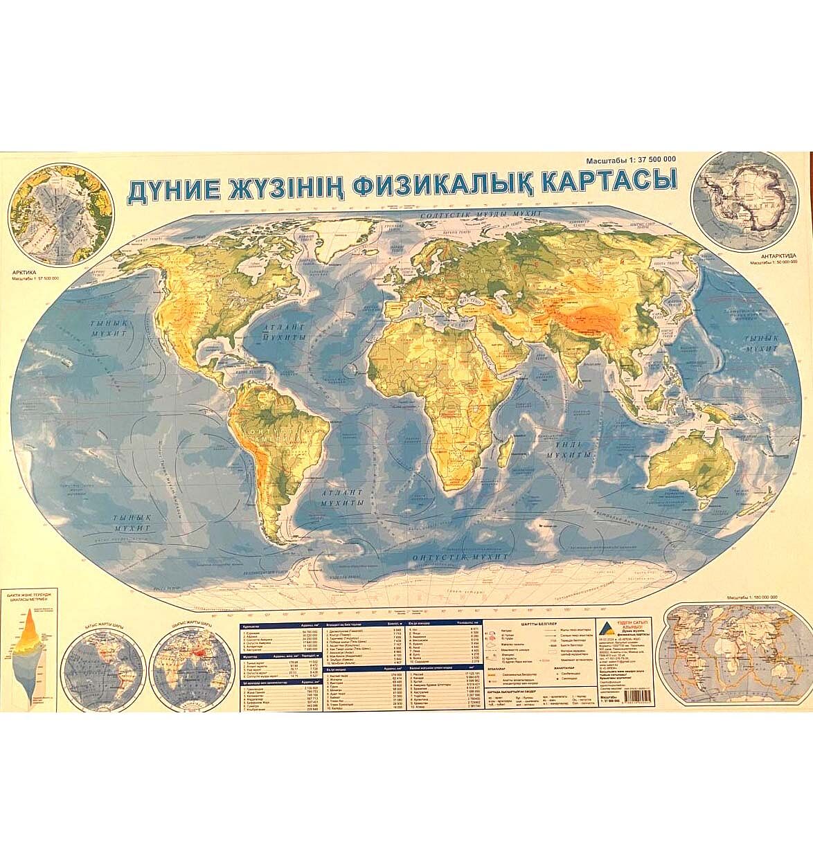 Дүние жүзінің физикалық картасы. Ламинированная настенная 1:37 500 000