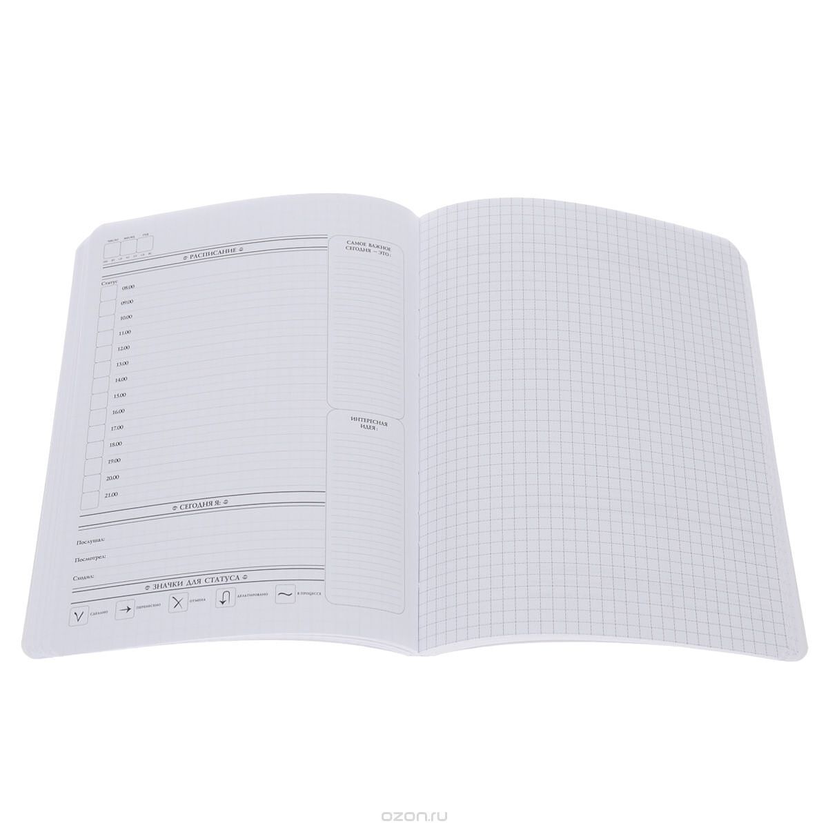 Это интересный проект с уникальным контентом. С ним вы сможете не только эффективно составлять планы на день, месяц и год, каждый день здесь предусмотрено место для записи самых интересных идей, для планов о вознаграждении себя за хорошую работу, для планов на ночь. Здесь есть где фиксировать названия книг, песен или фильмов дня. Это невероятно продуманный и удобный ежедневник, планнер и дневник в одном компактном блокноте, который удобно носить с собой.
