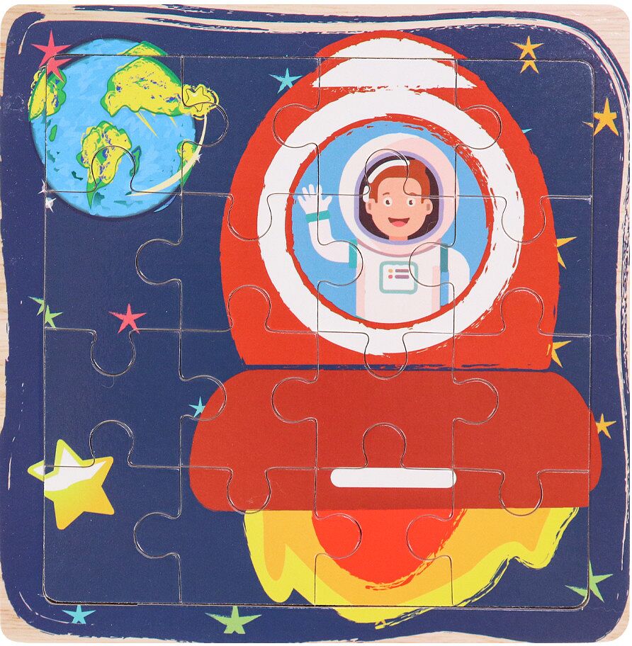 Деревянная пазл-рамка (14,5х14,5 см) Полет в космос (16 элементов) ( Арт. ИД-0133)