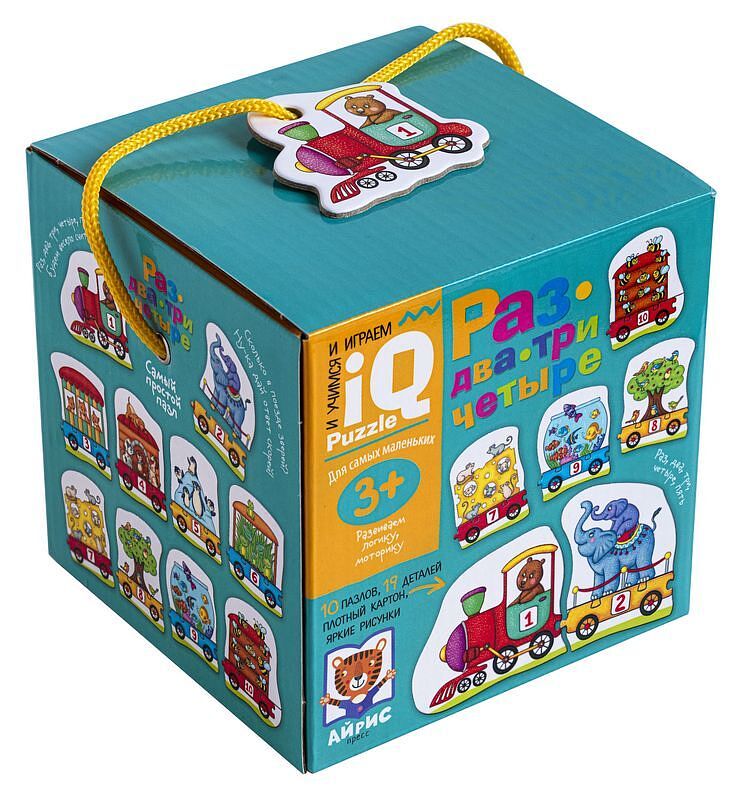 Пазлы «Раз, два, три, четыре» – это увлекательная настольная игра для развития навыков счёта и мелкой моторики. В наборе 10 пазлов в виде поезда, в котором едут животные. У каждого вагона свой номер. Нужно сложить пазл так, чтобы количество животных и число на вагоне совпадали. Внутри есть подробное описание правил игры. Набор предназначен для детей старше 3 лет. Размер:12x12x12 cm