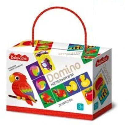 Детское домино с картинками из серии Baby Toys. Состав игры: картонные карточки – 28 штук (9 х 4,5 см). Игра рекомендована для детей от 3 до 5 лет, для 2–5 игроков. Правила игры на обороте коробки. Игровые карточки изготовлены из плотного картона толщиной 3 мм, гладкие и приятные на ощупь.