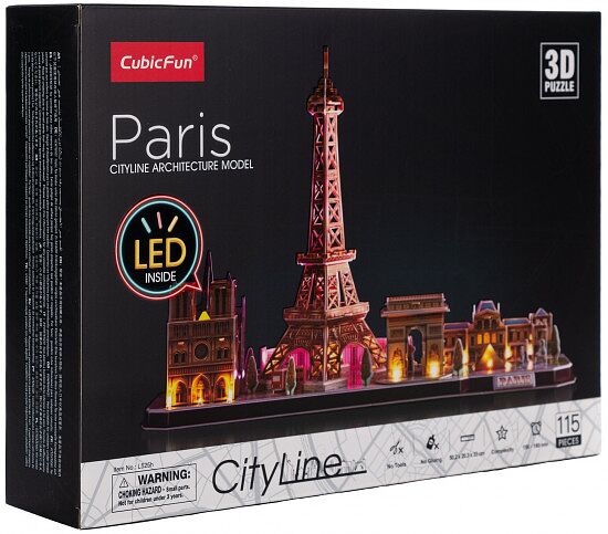 Развивающие 3D-пазлы для детей и взрослых с LED-подсветкой — это лучший подарок для увлеченного путешественника и любителя конструирования. Серия 3D-пазлов Cityline представляет объемную модель сразу нескольких миниатюрных копий самых известных архитектурных достопримечательностей Парижа: Эйфелевой башни, Лувра, Собора Парижской богоматери, Триумфальной арки. Открой конструктор, достань инструкцию и сразу приступай — детали 3d-пазла легко соединяются между собой. Для сборки модели не требуются клей и ножницы. Панорамный вид на Париж с подсветкой будет прекрасным дополнением к интерьеру дома или офиса, создаст особую атмосферу уюта и сможет использоваться как ночник. Все фигурные пазлы Cubic Fun — это высокая детализация, качественные детали и увлекательное хобби для всей семьи, т.к. объемные пазлы подходят для детей и взрослых.