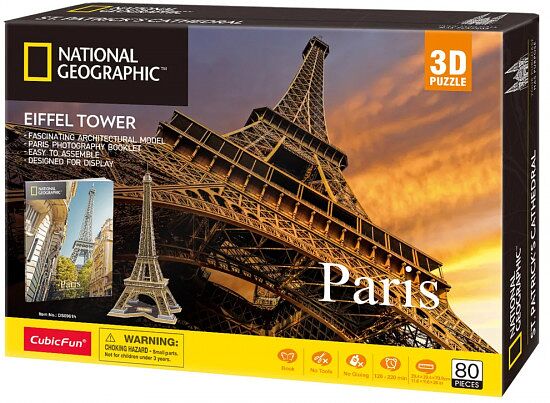 3D-пазлы от лидирующей инновационной компании CubicFun — высокий уровень детализации, качество самих деталей (детали надежно крепятся между собой без дополнительной фиксации, создавая единую конструкцию), стильный дизайн, а также информационная и образовательная составляющая. Увлекательный 3D-пазл достопримечательности Парижа — Эйфелевой башни из серии «National Geographic» c уровнем сложности 5 из 6. Линейка «National Geographic» позволяет построить реалистичные достопримечательности в формате 3D-пазла (с детальной инструкцией по сборке), а также фото-буклет страны из 28 страниц вдохновит на путешествия. Серия 3D-пазлов «National Geographic» обладает красивым декором, воссоздает всемирно известные достопримечательности и шедевры архитектуры, повышает уровень концентрации, зрительно-моторной координации, вдохновляет на познание мира. 3D-пазлы от CubicFun — это универсальный товар, удовлетворяющий потребности широкого круга потребителей: новый формат времяпровождения для детей, подростков и взрослых с интересным игровым процессом. Развиваются творческие навыки и концентрация к деталям. Различные уровни сложности помогут определиться с моделью как новичкам, так и опытным моделистам. 3D-пазлы станут отличным подарком близкому человеку или себе для сборки дома или в дороге.