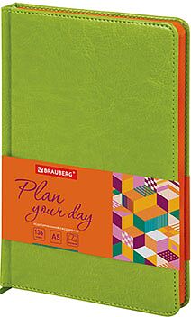 Внутренний блок включает 136 листов белой бумаги плотностью 70 г/м2. Каждая страничка имеет перфорированный угол. Благодаря стандартному формату А5 (138х213 мм) ежедневник удобно использовать как в офисе, так и на выездных деловых встречах. Твердая обложка стилизована под гладкую кожу. Подходит для горячего тиснения. Срез и форзац ежедневника окрашены на контрасте с цветом обложки, что придает ему особый шарм. Дополнением является закладка-ляссе, с помощью которой при необходимости можно быстро открыть ежедневник на нужной странице. Помимо прочего ежедневник снабжен обширным справочным материалом.Классика и модерн, стиль и практичность, совершенство и внимание к деталям – всем этим требованиям достойно отвечает продукция торговой марки BRAUBERG.
