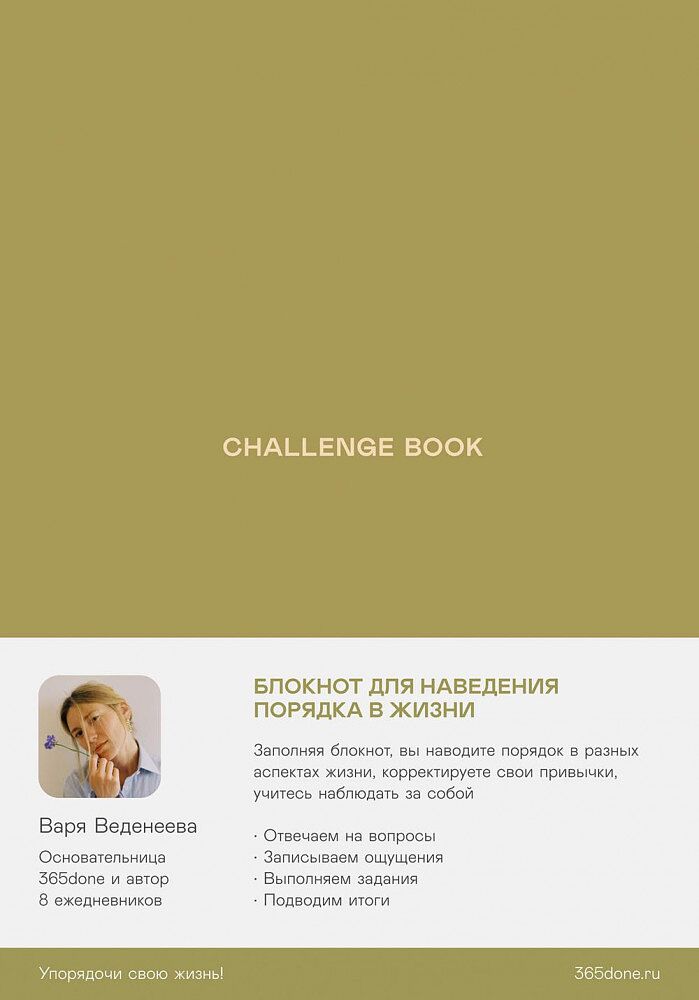 Мы не всегда поступаем осознанно и многие действия совершаем по привычке. Иногда этот автоматизм начинает выражаться в злоупотреблении едой (и других нездоровых пищевых привычках), а также игнорировании своих базовых потребностей в отдыхе, сне, отношениях с близкими. В блокноте собраны 15 челленджей для последовательной работы над порядком в разных областях вашей жизни: от вредных привычек, физической активности, гардероба и заботы об окружающей среде до отношений с деньгами. Заполняя трекер к каждому челленджу, вы сможете оценить реальное положение дел и после этого, возможно, что-то скорректировать в привычном образе жизни. Предполагается, что на прохождение практически каждого челленджа требуется 30 дней. На «Самооценку» понадобится два месяца.
