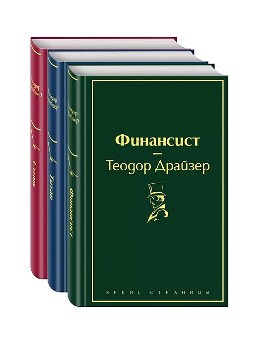 Вашему вниманию предлагается комплект из трех книг Теодора Драйзера. «Финансист» – первая часть знаменитой «Трилогии желания» Теодора Драйзера, в основу которой положена история жизни американского миллионера Чарльза Йеркса, сыгравшего значительную роль в разработке системы общественного транспорта в Чикаго и Лондонского метрополитена. Главный герой – Фрэнк Каупервуд – появляется на свет в семье мелкого банковского служащего, но благодаря незаурядному уму, железной воле и необычайной целеустремленности зарабатывает огромное состояние. Он попадает в мир роскоши и больших денег, оказывается в круговороте крупнейших финансовых операций, вращается в обществе лучших дельцов своего времени. Постепенно амбициозный юноша превращается в беспринципного, властного и жаждущего наживы миллионера. Жизнь как воплощение американской мечты, за которую придется дорого заплатить. И не только деньгами… «Титан» Вторая часть знаменитой «Трилогии желания» о финансисте Фрэнке Каупервуде, начавшем все сначала после филадельфийской тюрьмы. Бурлящий Чикаго – и большой бизнес, политика, любовь – все подчиняется воле главного героя. «Стоик» Вышедший после смерти Теодора Драйзера, заключительный роман «Трилогии желания» – «Стоик». Финансист-миллионер пенсионного возраста Фрэнк Каупервуд после краха в Чикаго переносит бизнес в Лондон – и по-прежнему добивается успеха, однако у смерти свои планы…