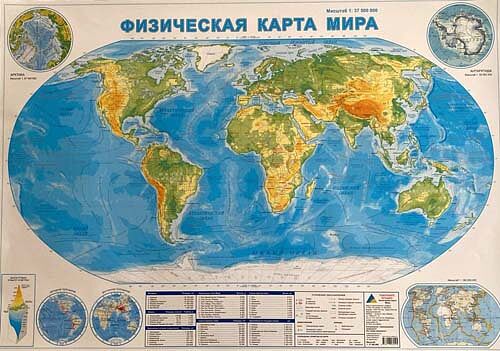 Физическая карта мира. Ламинированная настенная Масштаб 1 :37 500 000