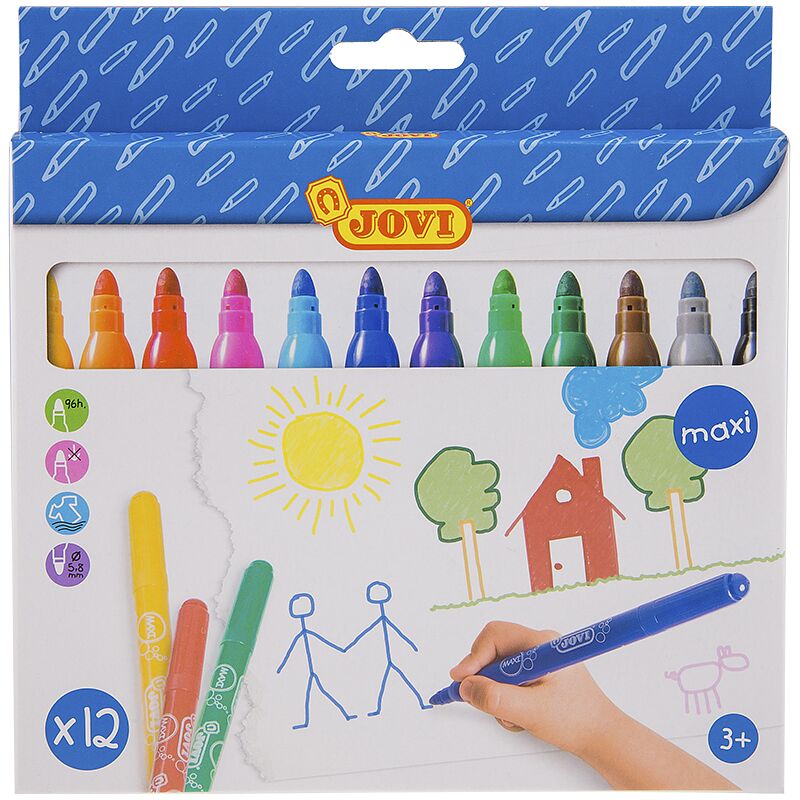 Первые фломастеры для малышей. Не требуют никаких специальных навыков – подходят для рисования даже самыми маленькими детьми. Утолщенная форма корпуса (диаметр 14 мм, длина 135 мм) удобна для маленьких детей и позволяет легко держать фломастер в руке, а с помощью утолщенного пишущего узла диаметром 3 мм малыш получит крупные яркие штрихи. Фломастеры выдерживают сильный нажим, наконечник не вдавливается внутрь. Не высыхают без колпачка в течение 96 часов. Длина письма 450 м. Полностью безопасные гипоаллергенные чернила на водной основе с пищевыми красителями. Специальный вентилируемый колпачок обеспечивает прохождение воздуха при случайном проглатывании. Легко смываются с кожи и отстирываются с большинства видов тканей. Расширенная палитра в 12 цветов (желтый, красный, зеленый, голубой, синий, фиолетовый, оранжевый, розовый, серый, темно-зеленый, коричневый, черный) поможет продолжить знакомство ребенка с многообразием цветов и развитие навыков рисования.