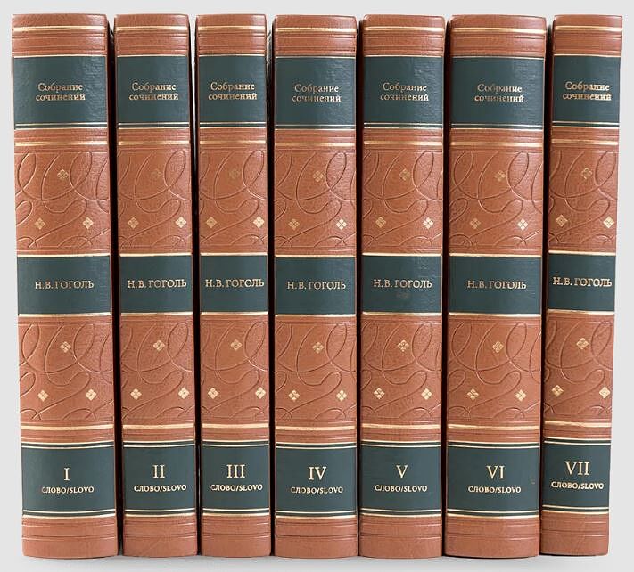 В издание включен основной корпус художественных произведений и публицистики писателя, а также избранная переписка автора с литераторами, критиками, художниками, артистами и воспоминания о Гоголе его современников Великолепная печать и изысканные переплетные материалы сделают это издание украшением любой книжной коллекции и ценным подарком даже самому искушенному библиофилу Гоголь любил повторять, что не будут живы его образы, если каждый читатель не почувствует, что они взяты «из того же тела, из которого и мы». Это свойство гоголевских образов — узнаваемость, близость каждому из нас — заметили еще современники писателя. Н.В. Гоголь. Том I - «Вечера на хуторе близ Диканьки», «Миргород», Ранние произведения. Н.В. Гоголь. Том II - Повести: «Невский проспект», «Нос», «Портрет», «Шинель», «Коляска», «Записки сумасшедшего», «Рим». Отрывок., Статьи 1831–1847 годов. Н.В. Гоголь. Том III - Пьесы: «Ревизор», «Женитьба», Драматические отрывки и отдельные сцены (с 1832 по 1837 год). Н.В. Гоголь. Том IV - «Мертвые души». Н.В. Гоголь. Том V - «Выбранные места из переписки с друзьями», «Размышления о Божественной литургии», Незавершенное (1840-е годы), Не напечатанное при жизни Гоголя. Н.В. Гоголь. Том VI - Переписка Н. В. Гоголя (1831–1852 годы) с А. С. Пушкиным, В. А. Жуковским, П. А. Плетневым, М. П. Балабиной, М. П. Погодиным, М. С. Щепкиным, А. О. Смирновой, Вьельгорскими, Н. М. Языковым и А. А. Ивановым. Н.В. Гоголь. Том VII - Воспоминания о Н. В. Гоголе С. Т. Аксакова, И. И. Плетнева, П. В. Анненкова, А. И. Герцена, В. В. Стасова, Г. П. Данилевского, А. О. Смирновой-Россет, И. С. Тургенева и других современников писателя. Тексты печатаются по изданию: Н.В. Гоголь. Собрание сочинений в семи томах. М., Художественная литература, 1984-1986.