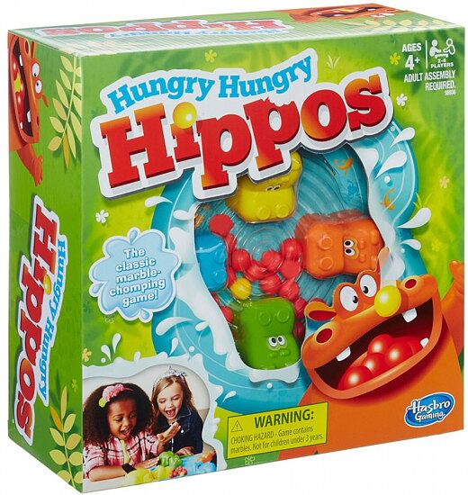 Веселая игра с четырьмя бегемотиками, которые поедают шарики! Чем быстрее вы нажимаете на их хвостики, тем больше они слопают. Побеждает тот, чей бегемотик съест больше всех шариков. Внимательно следите за полем — ведь теперь есть золотой шарик, проглотив который, вы моментально становитесь победителем! В комплекте: • игровая база. • 4 головы бегемотиков. • 4 тела бегемотиков. • 4 педали. • 21 шарик. • новая коробочка для хранения. Материал — ABS-пластик.