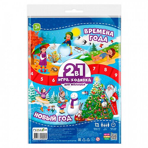 Игры-ходилки для малышей теперь имеют две стороны. Это значит, что в одном пакете сразу две интересные игры. Игра-ходилка с фишками для малышей 2в1 «Времена года+Новый год» с одной стороны знакомит малыша с таким весёлым и волшебным праздником «Новым годом». Обратная же сторона учит различать особенности разных времён года.