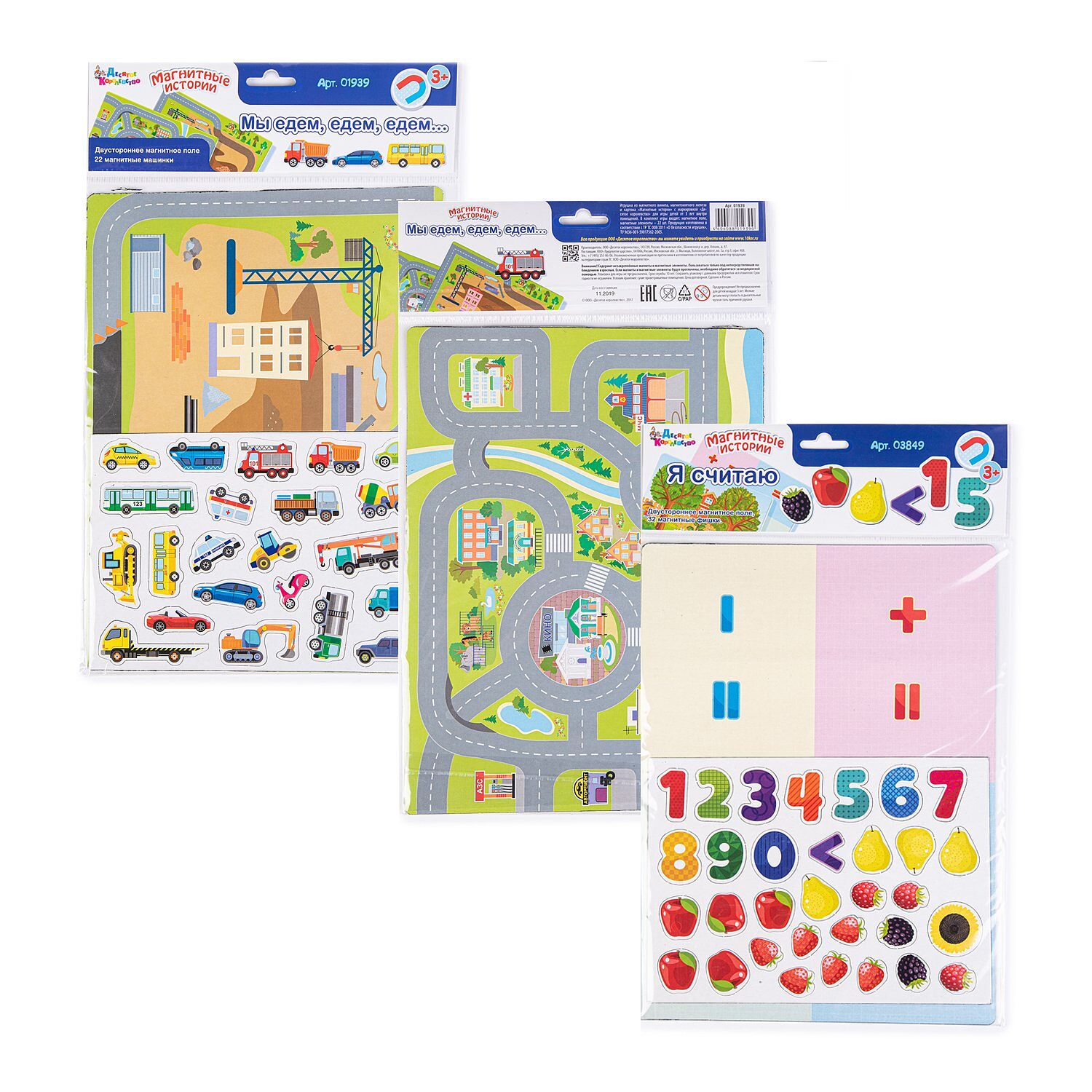 Магнитная игра «Мы едем, едем, едем» серии «Магнитные истории» не так проста, как может показаться на первый взгляд. В ней, ребенку от 3-х лет, предлагается расположить машинки в соответствии с их логической связью с разными местами на игровом поле. Например, машина скорой помощи рядом с больницей, техпомощь с авто ремонтом, строительная техника на стройке и тому подобное. Пусть ребенок сам расставит всю технику и объяснит, почему она должна быть именно в том или ином месте, по каким дорогам может передвигаться. Таким образом наша магнитная игра «Мы едем, едем, едем» поможет ребенку находить взаимосвязи, развивать логическое мышление и внимательность. В магнитную игру «Мы едем, едем, едем» входят: игровое 2-х стороннее поле из винила и мягкого железа. 22 машинки и техника различного назначения из магнитного винила.