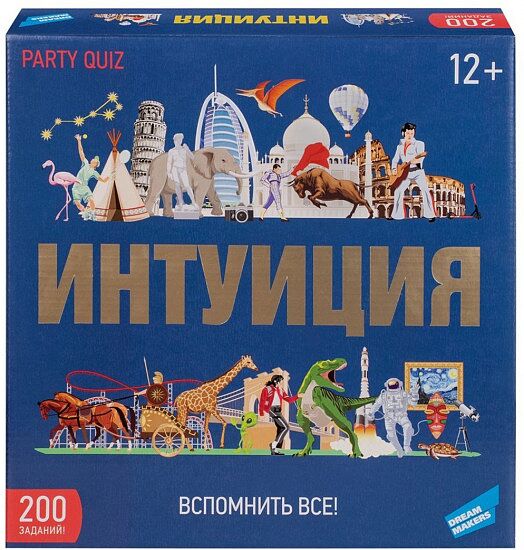 «Интуиция» — весёлая игра-викторина, которая понравится каждому! Для победы в игре вам понадобится не столько эрудиция, сколько азарт, сообразительность и интуиция! Игра прекрасно подойдет для весёлой вечеринки, встречи друзей или семейного досуга. А возможность ставить ставки на правильный ответ сделает игру увлекательной и непредсказуемой! Подключайте интуицию и делайте ставки! Комплектация: игровые карточки — 200 шт., жетоны — 12 шт., игровые фишки — 4 шт., игровое поле — 1 шт., правила игры — 1 шт.