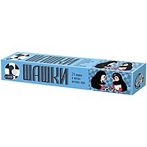 Игровой набор «Шашки» изготовлен из пластмассы и текстильного материала и предназначен для детей от 3-х лет. Состав набора: Текстильное игровое поле (293х293 мм) – 8х8 клеток Шашки (диаметр – 27 мм) – 24 шт. Правила игры указаны на упаковке . Вариантов игры в шашки: русские, бразильские, поддавки, чекерс, pool или итальянские.