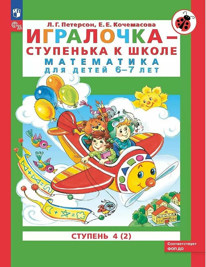 Пособие «Игралочка», ступень 4 (2), предназначено для развития математических представлений детей 6–7 лет. Является составной частью комплекта «Игралочка» для детей 3–7 лет. В комплект также входят программа, методические рекомендации для педагогов со сценариями каждого занятия, демонстрационные и раздаточные материалы. Комплект «Игралочка» ориентирован на развитие у дошкольников мышления, творческих способностей, интереса к математике. Входит в комплект методических и развивающих пособий по дошкольному образованию «Мир открытий». Является начальным звеном непрерывного курса математики «Учусь учиться» от 3 до 15 лет. Его непосредственным продолжением служат учебники математики Л. Г. Петерсон для начальной и основной школы. Комплект «Игралочка» может использоваться в системе дошкольного образования и для индивидуальной работы с детьми.