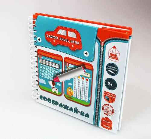 Полезная и компактная игра «Соображай-ка» внесёт разнообразие в любую поездку. В наборе вы найдёте карточки с различными заданиями на смекалку, внимание, счёт и развитие моторики рук, а также маркер со стирателем для многоразового использования.
