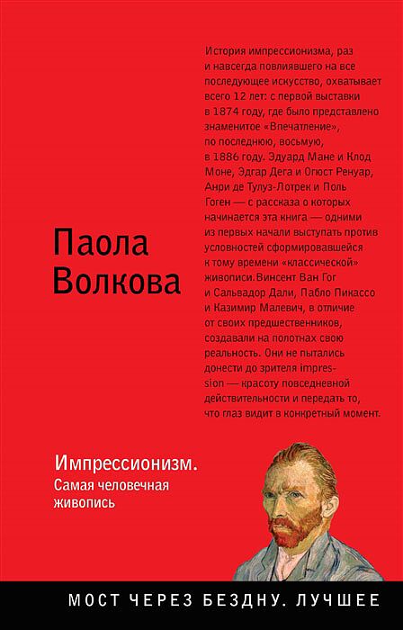 История импрессионизма, раз и навсегда повлиявшего на все последующее искусство, охватывает всего 12 лет: с первой выставки в 1874 году, где было представлено знаменитое Впечатление, по последнюю, восьмую, в 1886 году. Эдуард Мане и Клод Моне, Эдгар Дега и Огюст Ренуар, Анри де Тулуз-Лотрек и Поль Гоген – с рассказа о которых начинается эта книга – одними из первых начали выступать против условностей сформировавшейся к тому времени классической живописи. Винсент Ван Гог и Сальвадор Дали, Пабло Пикассо и Казимир Малевич, в отличие от своих предшественников, создавали на полотнах свою реальность. Они не пытались донести до зрителя impression – красоту повседневной действительности и передать то, что глаз видит в конкретный момент. В путешествие от импрессионизма к сюрреализму, от впечатления – к эмоции, от Венеры Милосской до Черного квадрата приглашает нас Паола Дмитриевна Волкова в очередном томе серии Мост через бездну.