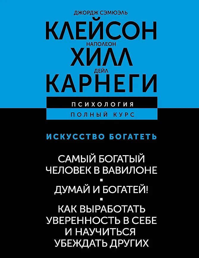 Перед вами мировая классика достижения богатства и искусства общения, секрет многих миллионеров и миллиардеров, книги, с которых начинались успешные проекты, строились корпорации и закладывались солидные счета в банках — знаменитые «Самый богатый человек в Вавилоне» Джорджа С. Клейсона, «Думай и богатей!» Наполеона Хилла и «Как выработать уверенность в себе и научиться убеждать других» Дейла Карнеги. Книги Клейсона, Хилла и Карнеги — это уникальное сочетание идей и практических советов, которые помогут вам добиться успеха и карьерного роста, настроиться на деньги, понять законы их движения, накопления и сохранения, научат, как найти самые быстрые и эффективные пути к финансовому и личностному благополучию. Не упустите свой шанс стать богаче, как это уже сделали миллионы людей по всему миру!