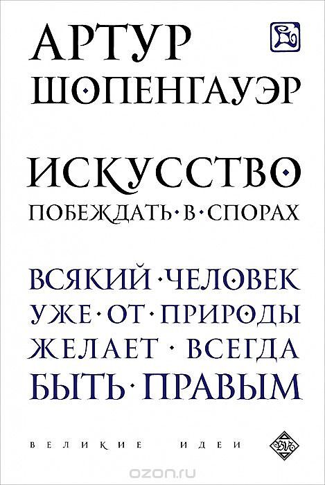 Артур Шопенгауэр — немецкий философ-иррационалист. Учение Шопенгауэра, основные положения которого наложены в труде Мир как воля и представление и других работах, часто называют пессимистической философией. ИСКУССТВО ПОБЕЖДАТЬ В СПОРАХ — это руководство по ведению диспутов, написанное в XIX веке и не утратившее своей актуальности в веке XXI. В этом произведении Шопенгауэр ставит целью победу в споре и дает конкретные рекомендации для ее последовательного достижения.По мнению автора, для того чтобы одержать победу в споре, необязательно быть фактически правым — нужно лишь использовать правильные приемы. Он приводит более 30 так называемых уловок. Также в это издание включена глава «О самостоятельном мышлении» из книги Parerga und Paralipomena, а также еще одна глава той же книги, афоризмы и отрывки из других произведений философа, которые позволят читателю приобщиться к искусству облекать собственную мысль в краткую, точную и остроумную форму, в чем Артуру Шопенгауэру не было равных. Книга сопровождена подборкой избранных цитат из произведения, которые помогут быстро освежить в памяти содержание философского текста.