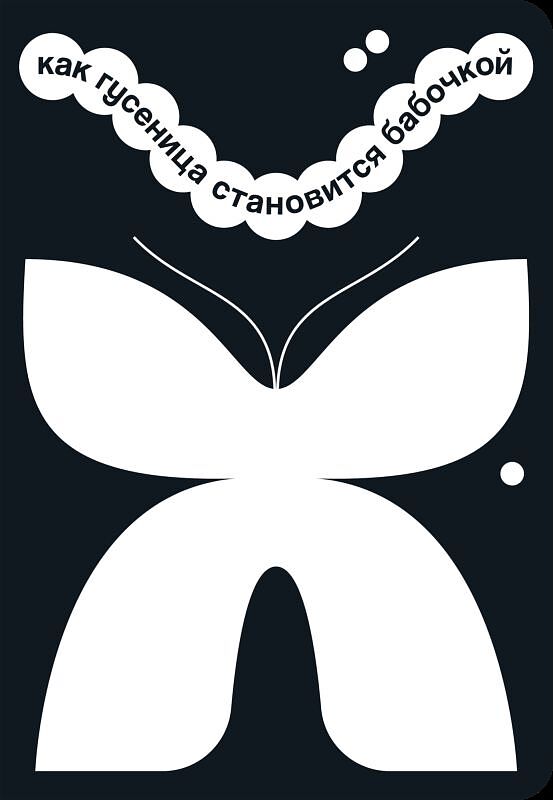 Смотри: гусеница!Когда придёт время, она превратится в бабочку, прекрасную и свободную.Эта книга для самых маленьких читателей, которые только начинают узнавать мир. Она поможет в развитии зрительных навыков: фиксации взгляда, распознавании глубины пространства и цветового восприятия. Монохромная история станет надёжным подспорьем в формировании устойчивого взаимодействия родителя и ребёнка, чтобы практика совместного чтения стала впоследствии доброй семейной традицией.
