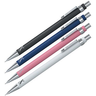Механический карандаш с металлическим клипом и хромированным элементами. Отличается элегантным дизайном. Корпус с покрытием soft touch выполнен в четырёх стильных цветах – чёрном, белом, тёмно-синем и розовом. 50 штук в пластиковом стакане. Диаметр грифеля - 0,5 мм. Твёрдость - HB. Снабжён двумя запасными грифелями и встроенным ластиком. Материал корпуса – прорезиненный пластик. Направляющий механизм грифеля выполнен из металла. Подача грифеля осуществляется с помощью кнопочного механизма.