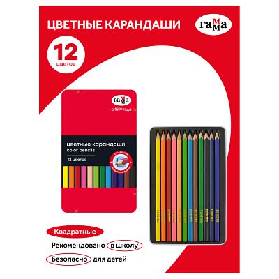 Цветные карандаши Гамма имеют уникальную квадратную форму. Стильный матовый корпус и необычная форма карандаша обязательно привлекут внимание окружающих. Карандаши упакованы в металлический пенал, который поможет сохранить карандаши от повреждений. Проклееный ударопрочный грифедь не крошится во время рисования и не ломается после падения. Карандаши яркие и укрывистые благодаря высококачественным пигментам в составе. Специальная обработка древесины позволяет легко заточить карандаш без зазубрин и заноз. Представлены в наборе из 12 классических цветов.