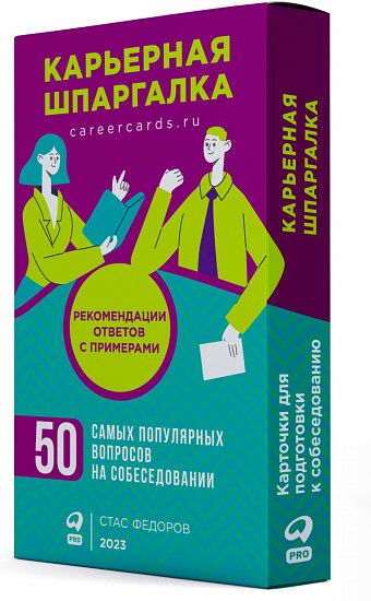 Залог успешной карьеры — постоянное саморазвитие, четкий план роста и достижения целей, гибкость и способность адаптироваться к изменениям, уверен автор «Карьерной шпаргалки» Стас Федоров. Комплект методических карточек он подготовил для того, чтобы помочь читателям лучше осознать их карьерные цели, проанализировать прежние ошибки, найти окна новых возможностей и, таким образом, оказаться полностью готовыми к первому этапу карьерных изменений — собеседованию в новой компании. Набор состоит из 50 карточек, каждая из которых содержит типичный вопрос из звучащих на собеседованиях, пояснение к вопросу, полезные советы (в том числе и наводки на книги по карьере, которые стоит почитать) и пример ответа. Прекрасно структурированная информация легко усваивается и перерабатывается в идеи и инструменты, которые необходимы кандидату, чтобы получить желаемую вакансию. Карточный формат имеет ряд преимуществ перед другими методиками подготовки и обучения: эффективность, простота применения, быстрый результат. В основе подхода лежит система Лейтнера. Геймификация процесса помогает лучше усваивать материал: без стресса и в игровой форме. С помощью карточек можно отрепетировать собеседование самостоятельно, с другом, с коллегой или карьерным консультантом.