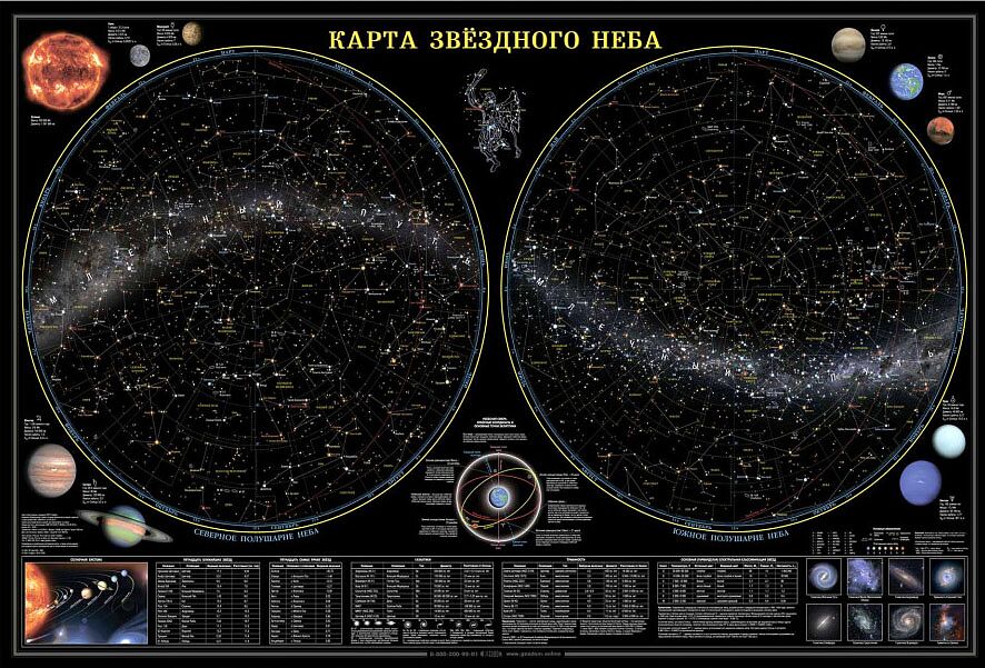 Карта настенная на рейках. Звездное небо. Планеты. 124х80 см